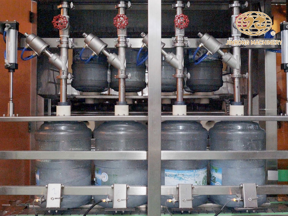 桶裝水灌裝線設(shè)備主要由清洗,灌裝,壓蓋三部分組成,主要應(yīng)用于3加侖和5加侖飲用水的一體化生產(chǎn)。大桶水灌裝生產(chǎn)線由拔蓋機、內(nèi)外刷桶機、灌裝機、壓蓋機、套標機、貼標機、噴碼機、套袋機等組成。